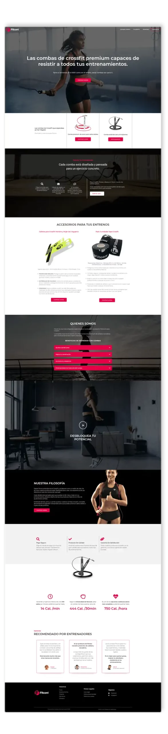 Se ha realizado este diseño web tipo landing page para la marca Fitconi especialistas en combas de CrossFit y accesorios de entrenamiento.